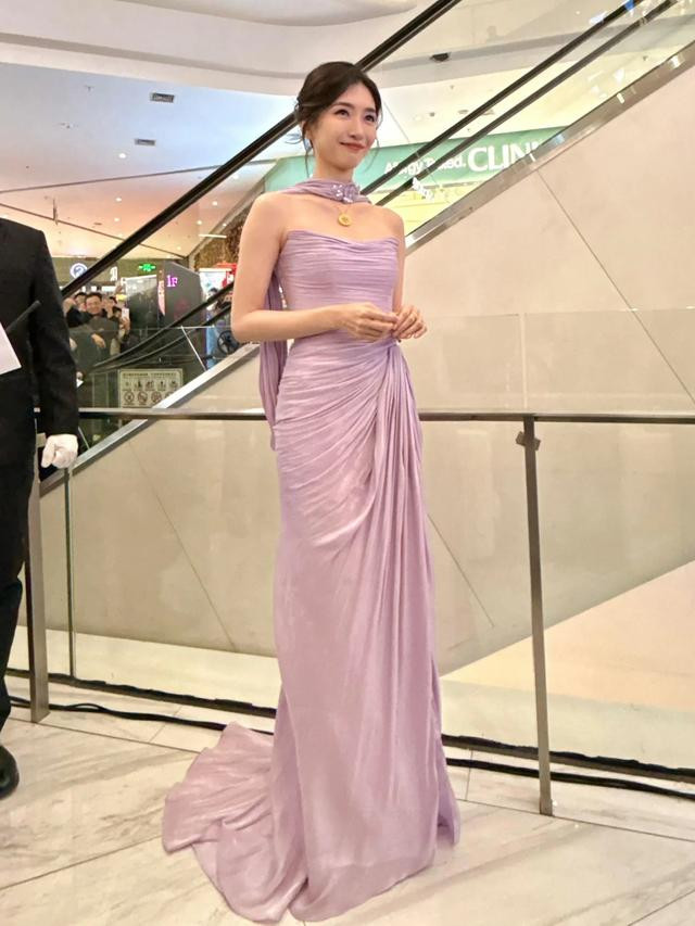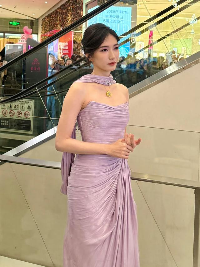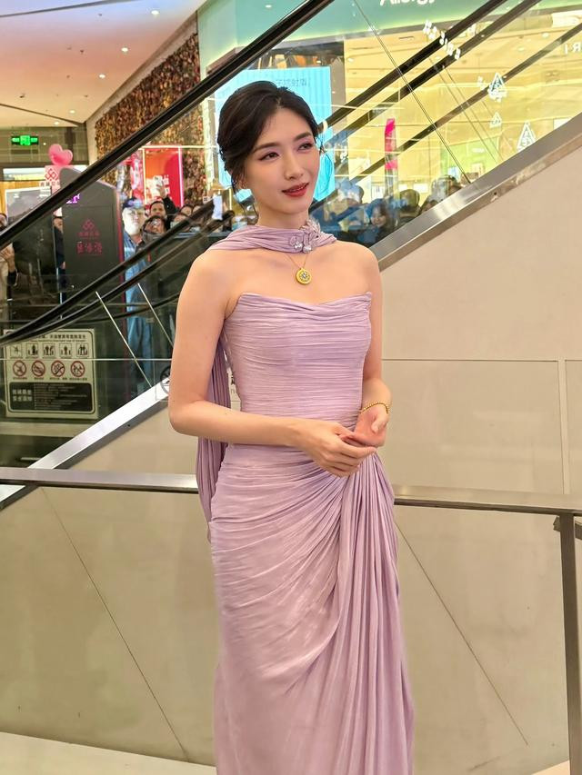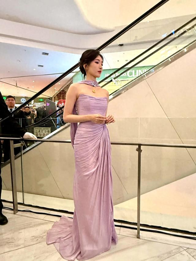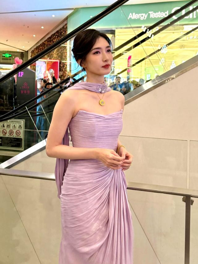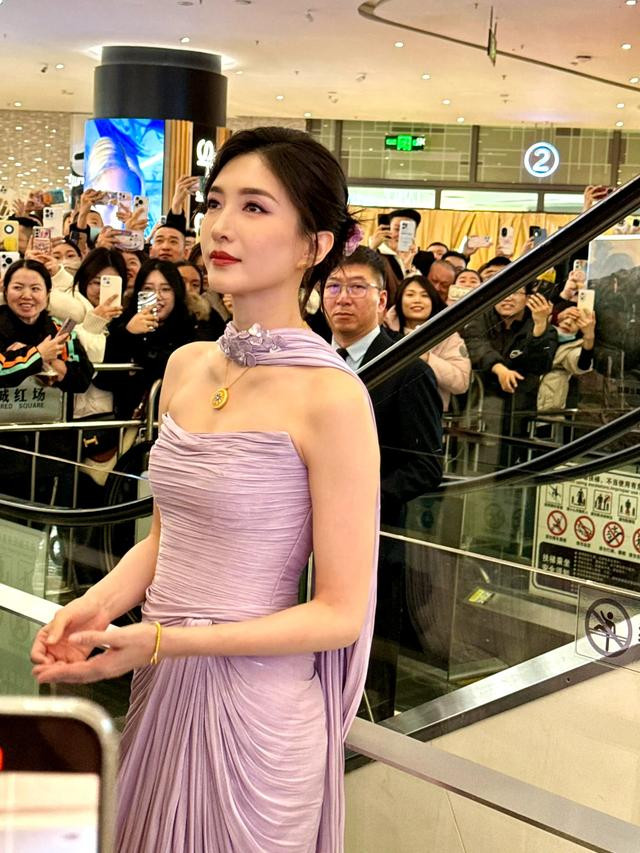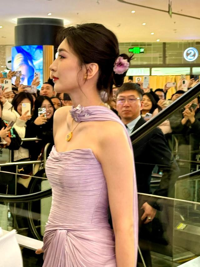 江疏影最新活动路透, 穿紫裙被人潮围观, 笑脸盈盈没脾气